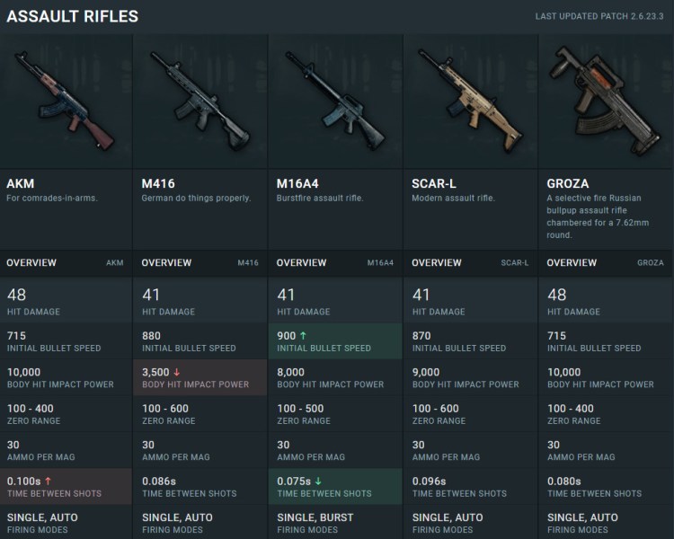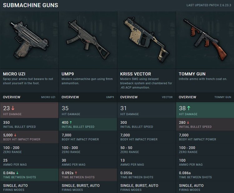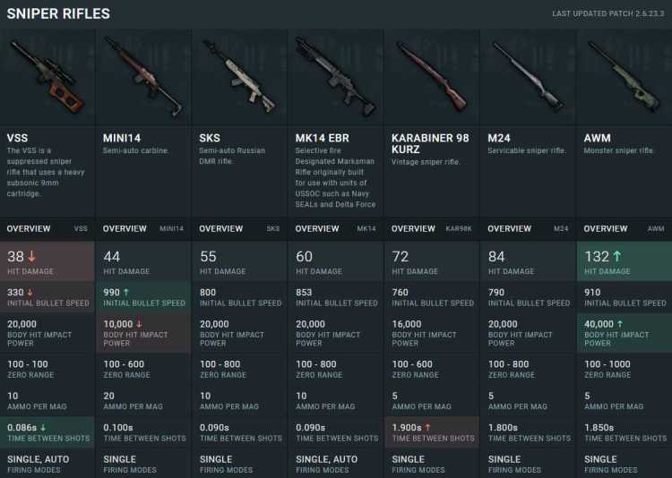 Характеристики оружия Автоматические винтовки, характеристики Дробовики Пистолеты-пулемёты Снайперские винтовки